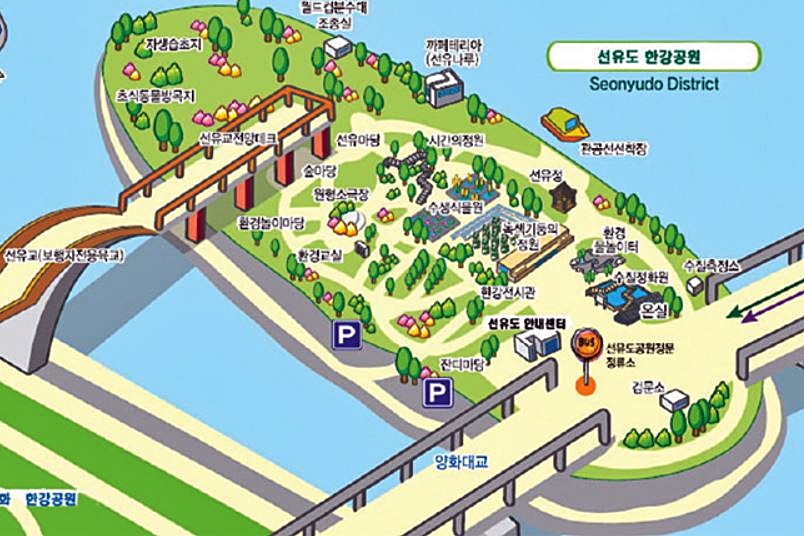 공원 정보 안내: 선유도공원의 개장 시간, 주요 시설물 위치(시간의 정원, 수생식물원, 온실 등), 이용 수칙 등에 대한 상세한 정보를 제공합니다.