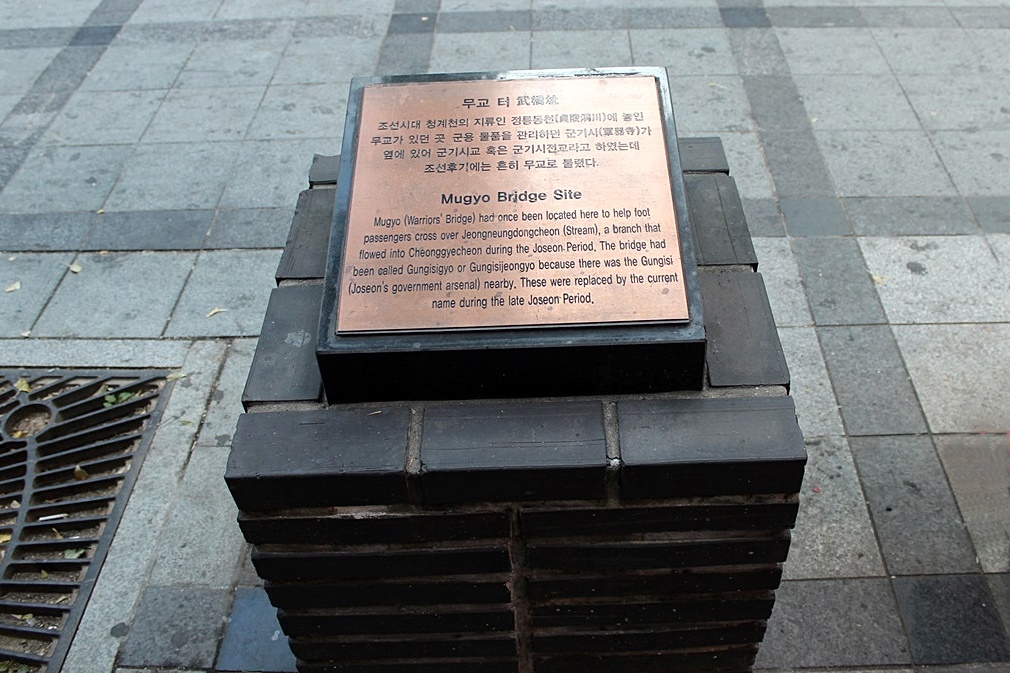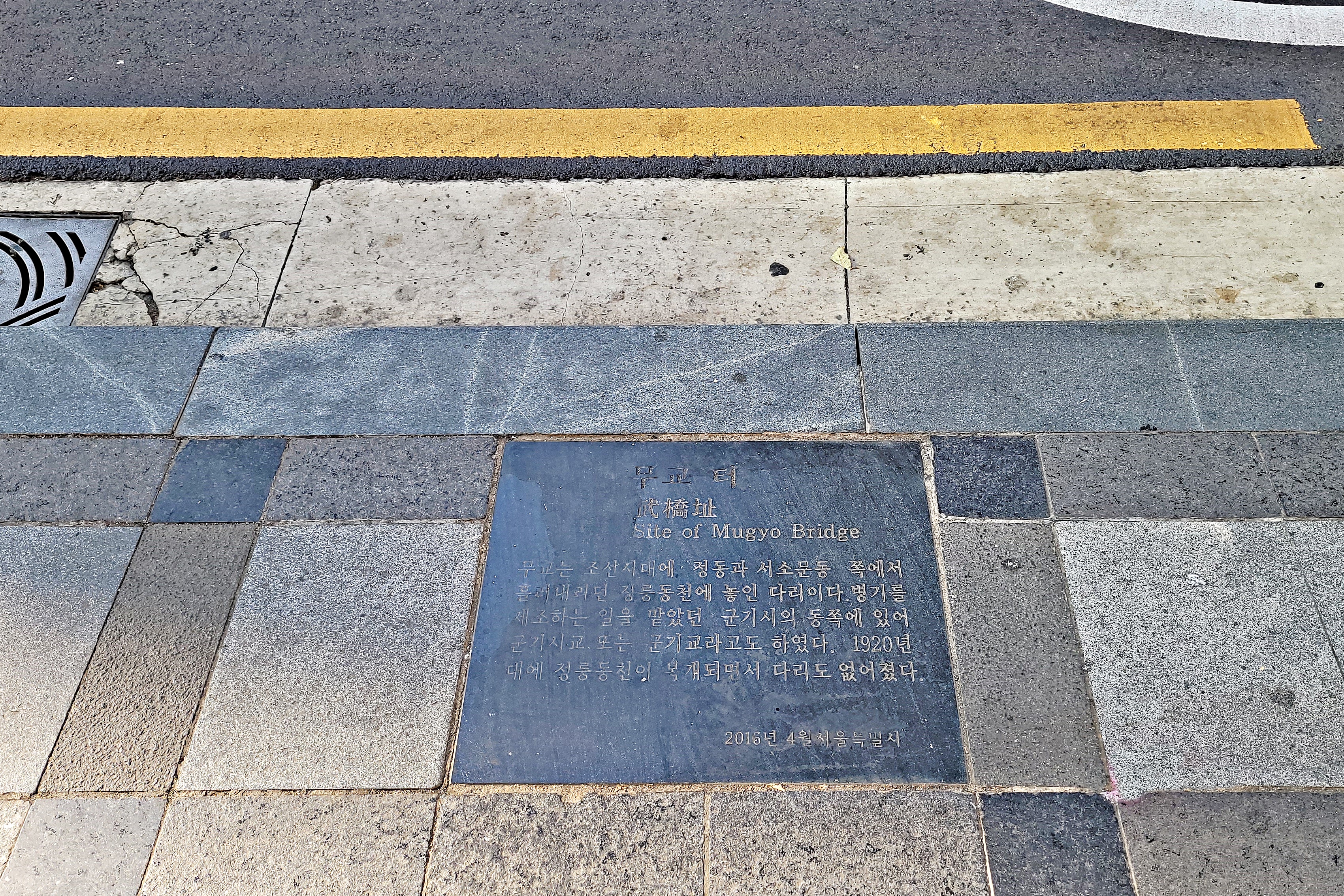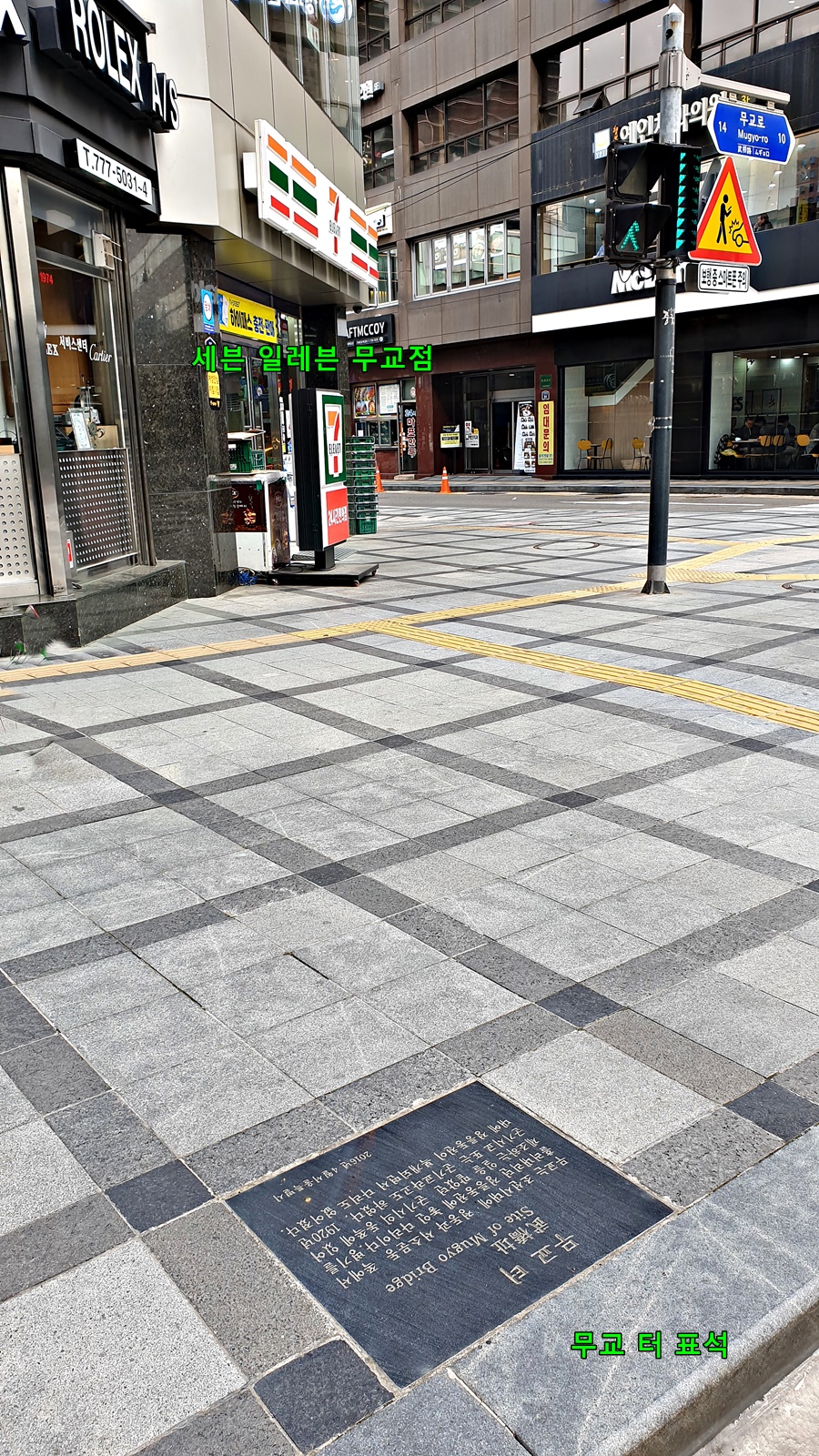 ▼ 무교 터(武橋址) 표석... 세븐 일레븐 무교점 앞 횡단보도 앞에 있다.