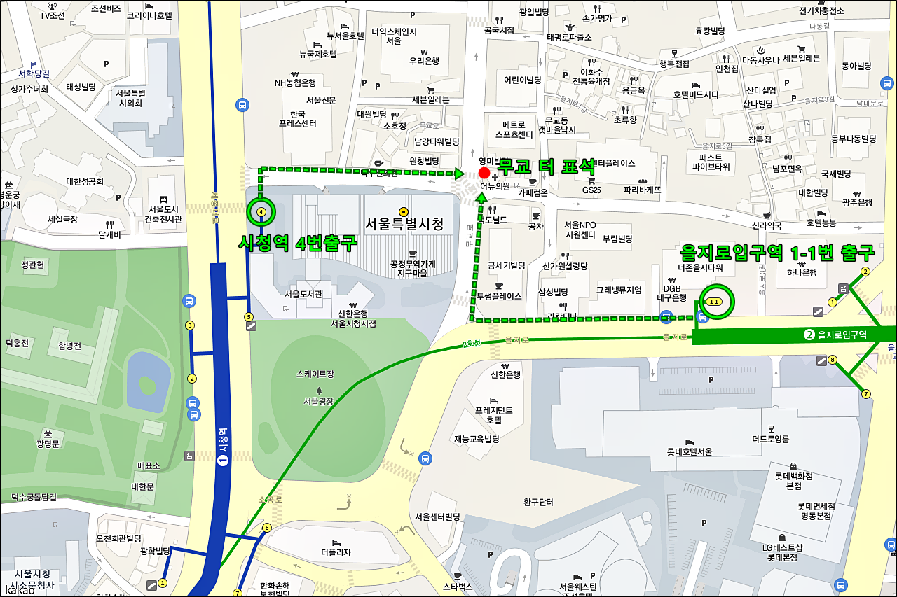 ▼ 무교 터(武橋址) 표석 위치... 세븐 일레븐 길 건너 건물...