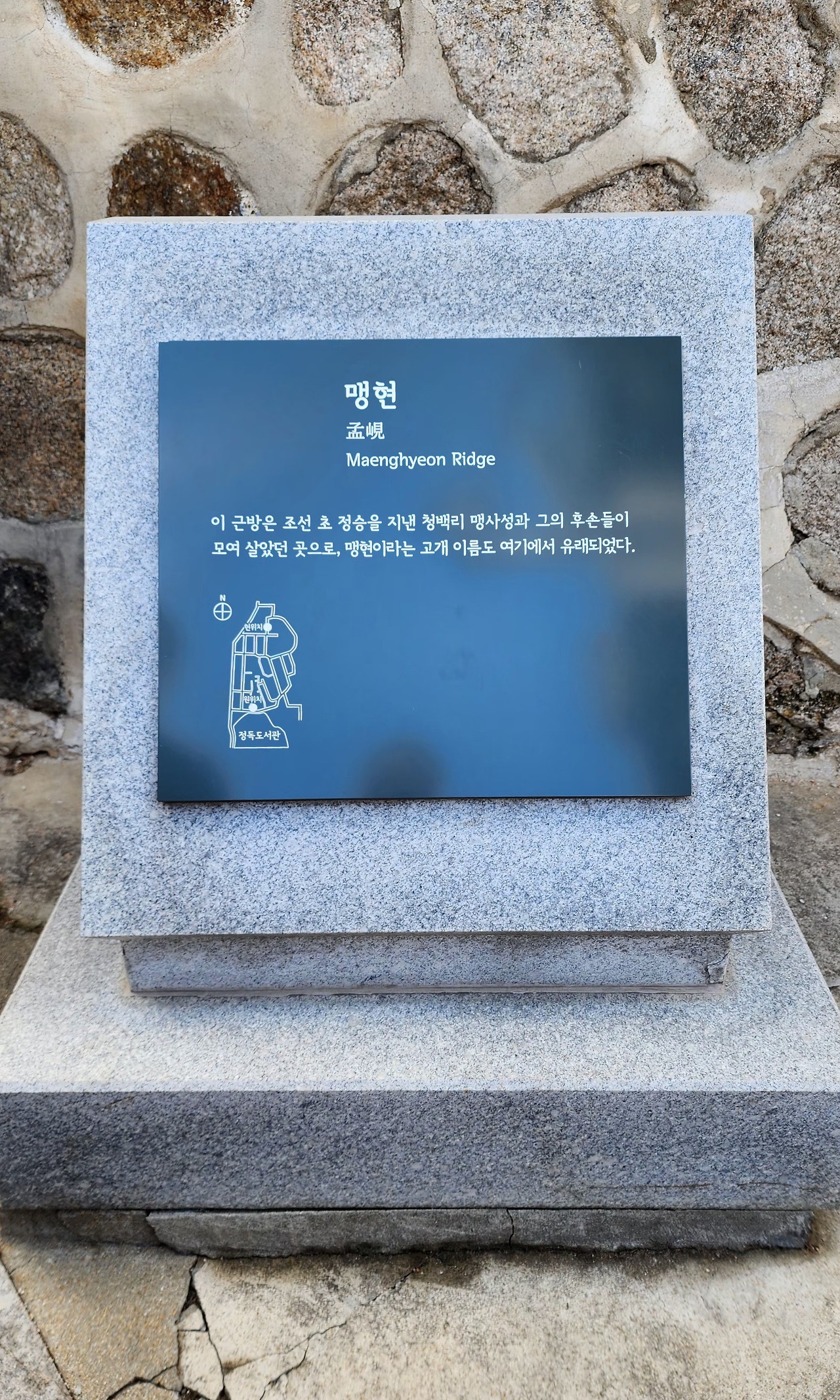▶ 예전에는 맹사성 집터로 표석이 있었는데 그 사이에 또 맹현으로 바뀌었다. 맹사성 집터는 정독도서관 뒷쪽이라고 표기되어 있다.