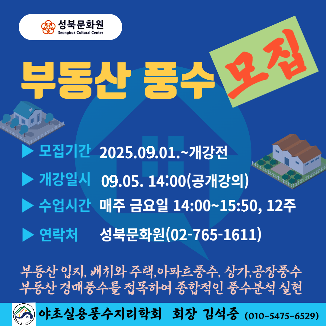 성북문화원 가을학기 '부동산 풍수' 수강생을 모집합니다.