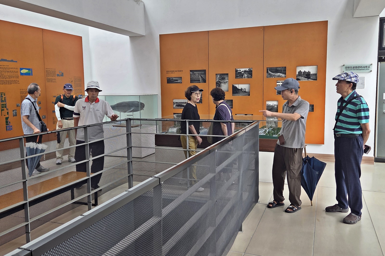 ▼ 선유도공원 안내센터에는 각종 전시물이 전시되어 있어 선유도공원 조성 과정과 옛 정수장 시설의 역사와 기능을 쉽게 알 수 있도록 하였다.