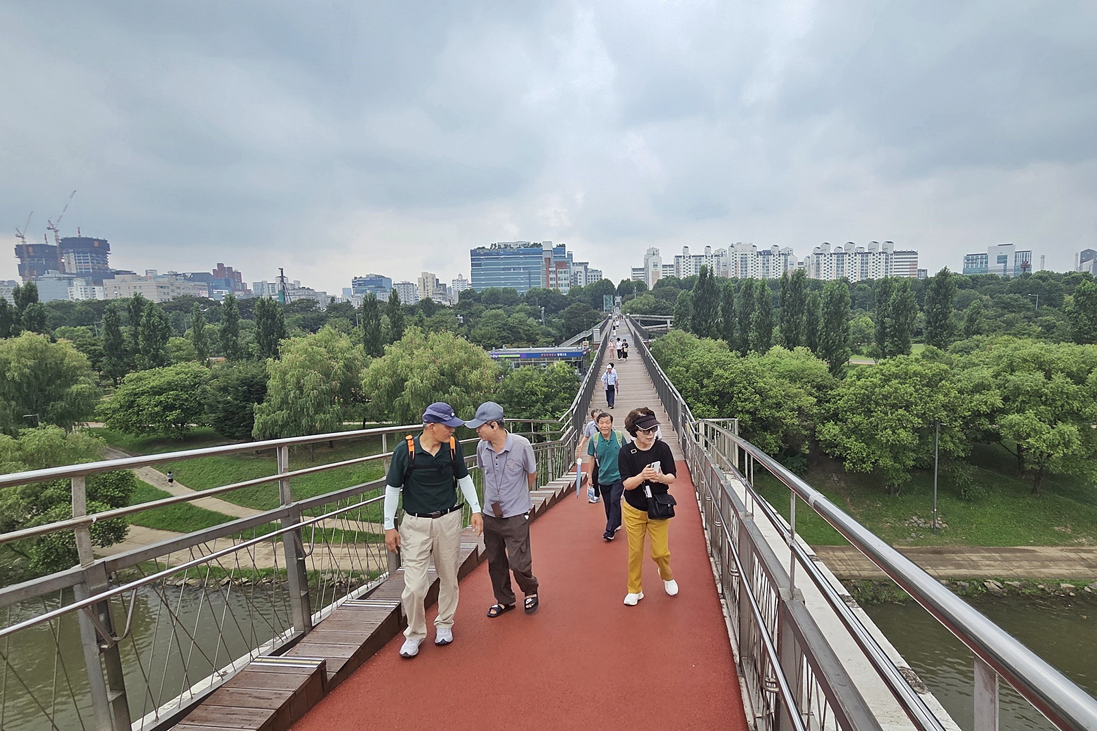 ▼ 선유교를 건너는 회원님들
