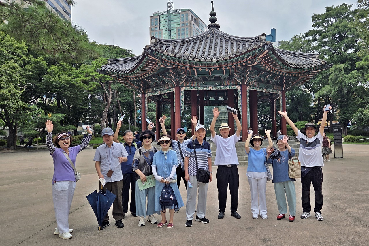 모든 답사를 마치고 탑골공원 팔각정 앞에서 단체사진을 찍었습니다.